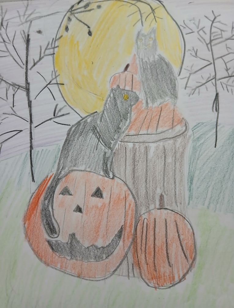 Cat Drawing and Halloween Drawings by Joseph Evaldi